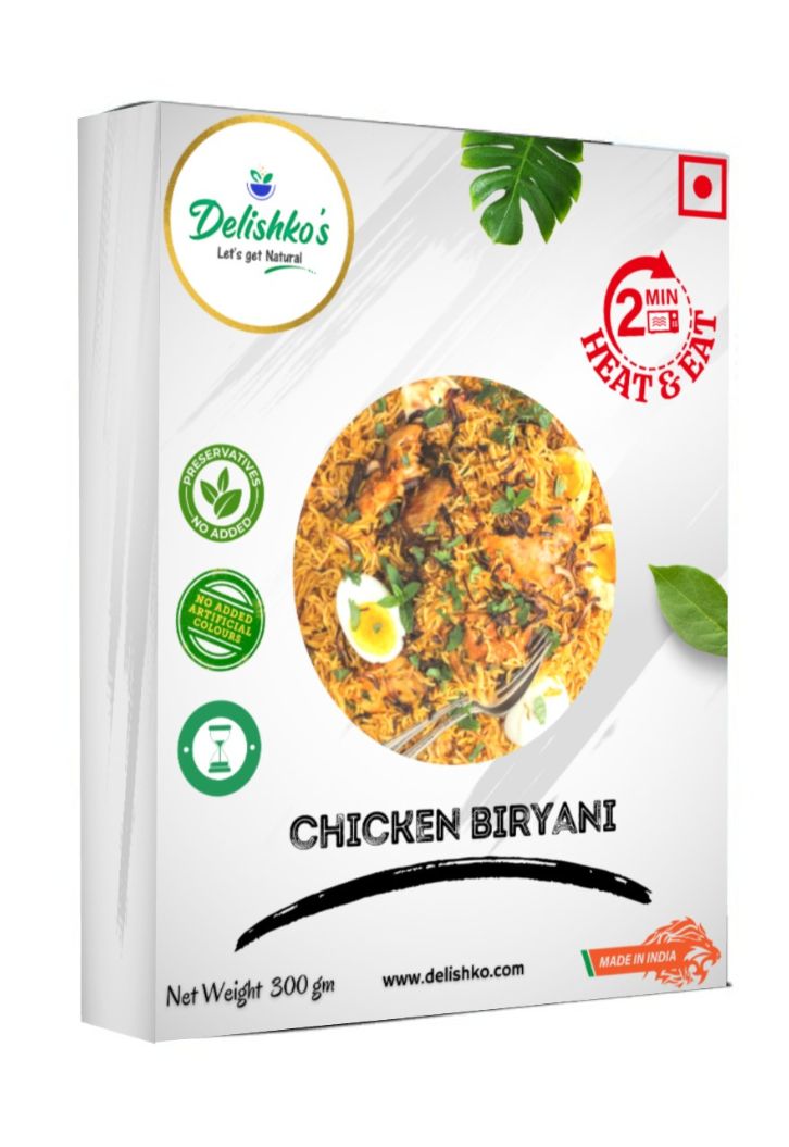 Ingredients: Cooked Rice (Water, Rice),Chicken (15%),Chicken Biryani Masala (Salt, Mixed spices, Refined wheat flour, Corn starch),Sugar, Refined Sunflower Oil,Ghee,FriedOnion,Curd,Mint, Ginger, Garlic,Green Chili, Caraway Seeds, Acidity Regulator