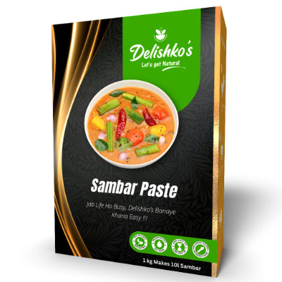 Delishko’s 100% Natural Sambar Paste Mix |Delicious and Healthy, Ready to cook | Must to have breakfast option with idli,dosa,medu vada etc.
