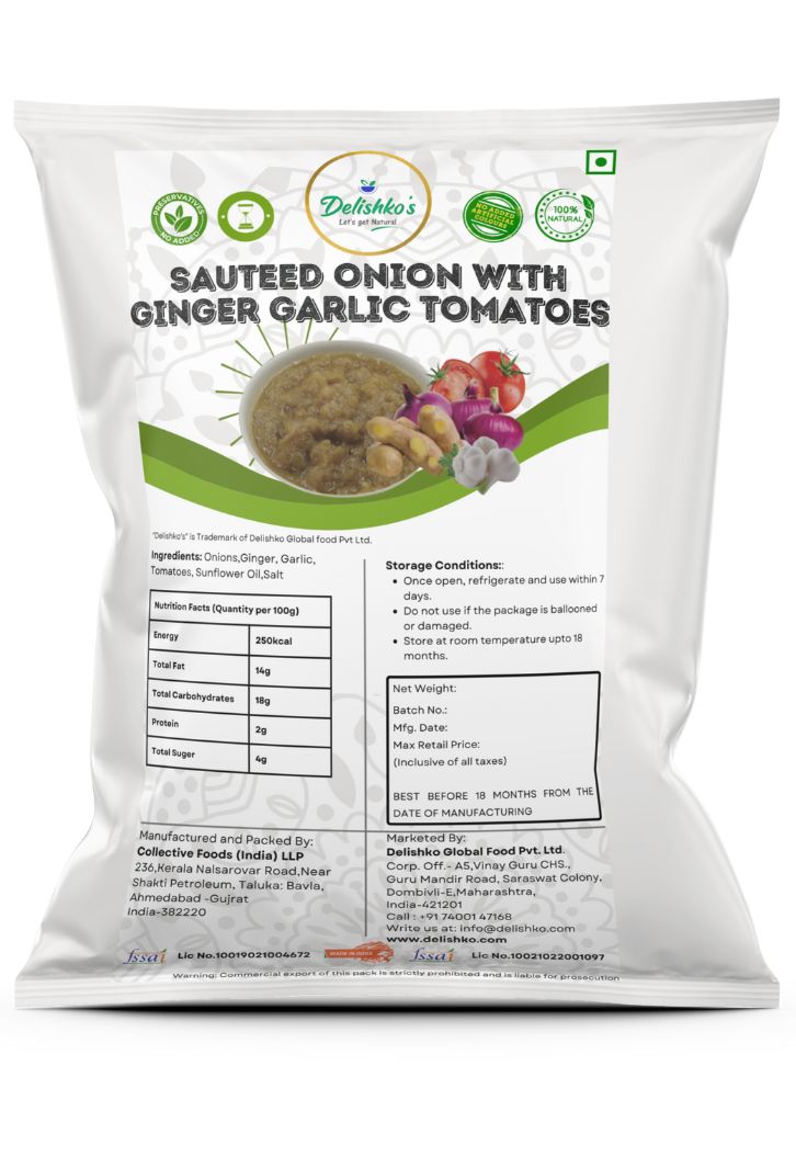 Ingredients: Fresh Farm Onions, Tomatoes, Ginger,Garlic,Sunflower Oil, Salt
